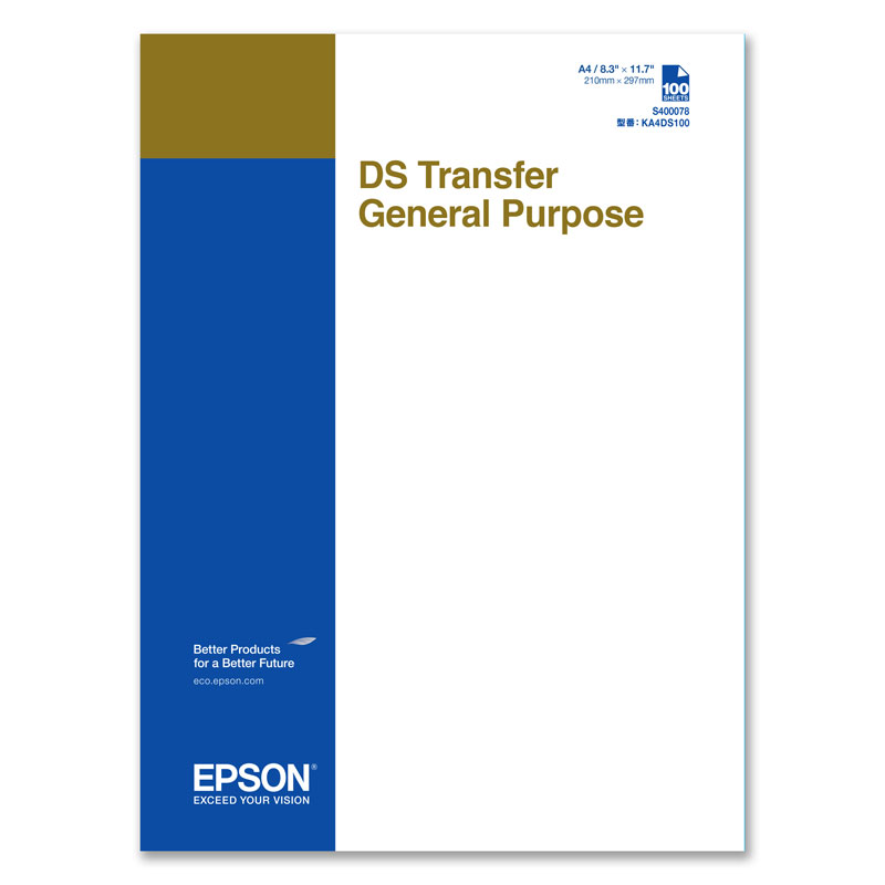 Le papier DS Transfer General Purpose a été développé pour l’impression décorative par transfert d’encre sur des supports rigides et des textiles à base de polyester. Il est compatible avec les encres Epson UltraChrome DS et a été développé pour être utilisé avec l’imprimante numérique à sublimation SureColor SC-F500.