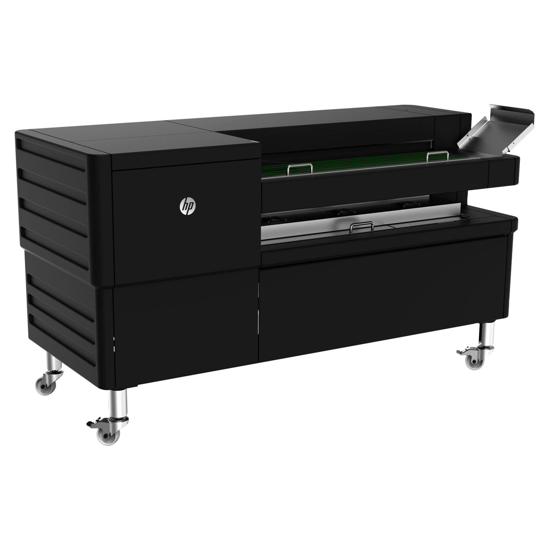 La plieuse HP PageWide XL F40 permet le pliage en ligne à haute productivité pour les imprimantes HP PageWide XL et HP DesignJet XL. Contrôle de la plieuse depuis le logiciel HP SmartStream, le lecteur, le scanner ou l'écran tactile de l'imprimante.