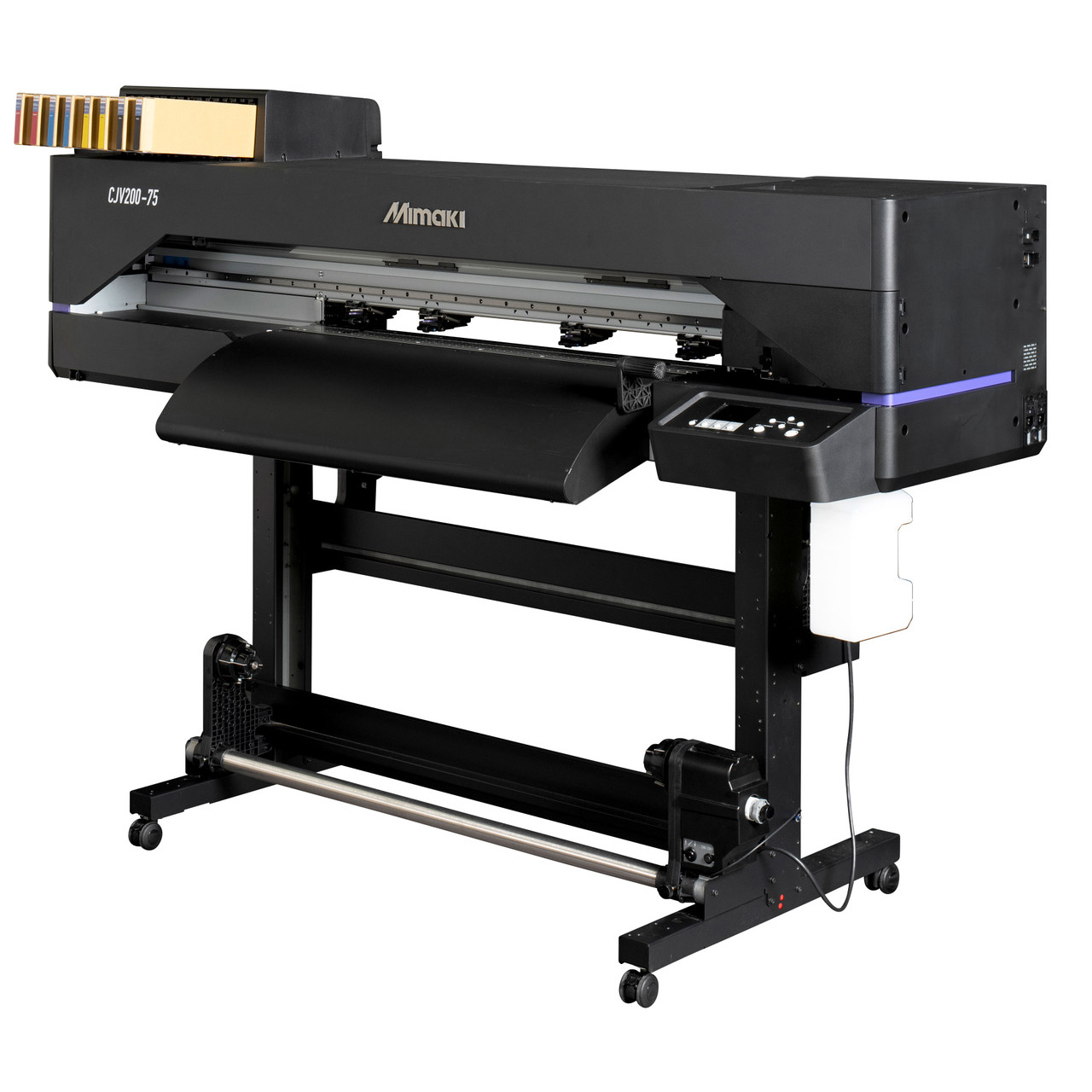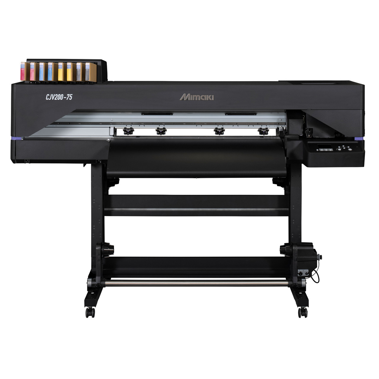 Imprimante Mimaki CJV200-75 éco-solvant 2-en-1 Print & Cut. Qualité pro, encres SS22 sans GBL. Idéale pour signalétique POS, PLV, enseignes et marquage véhicule.
