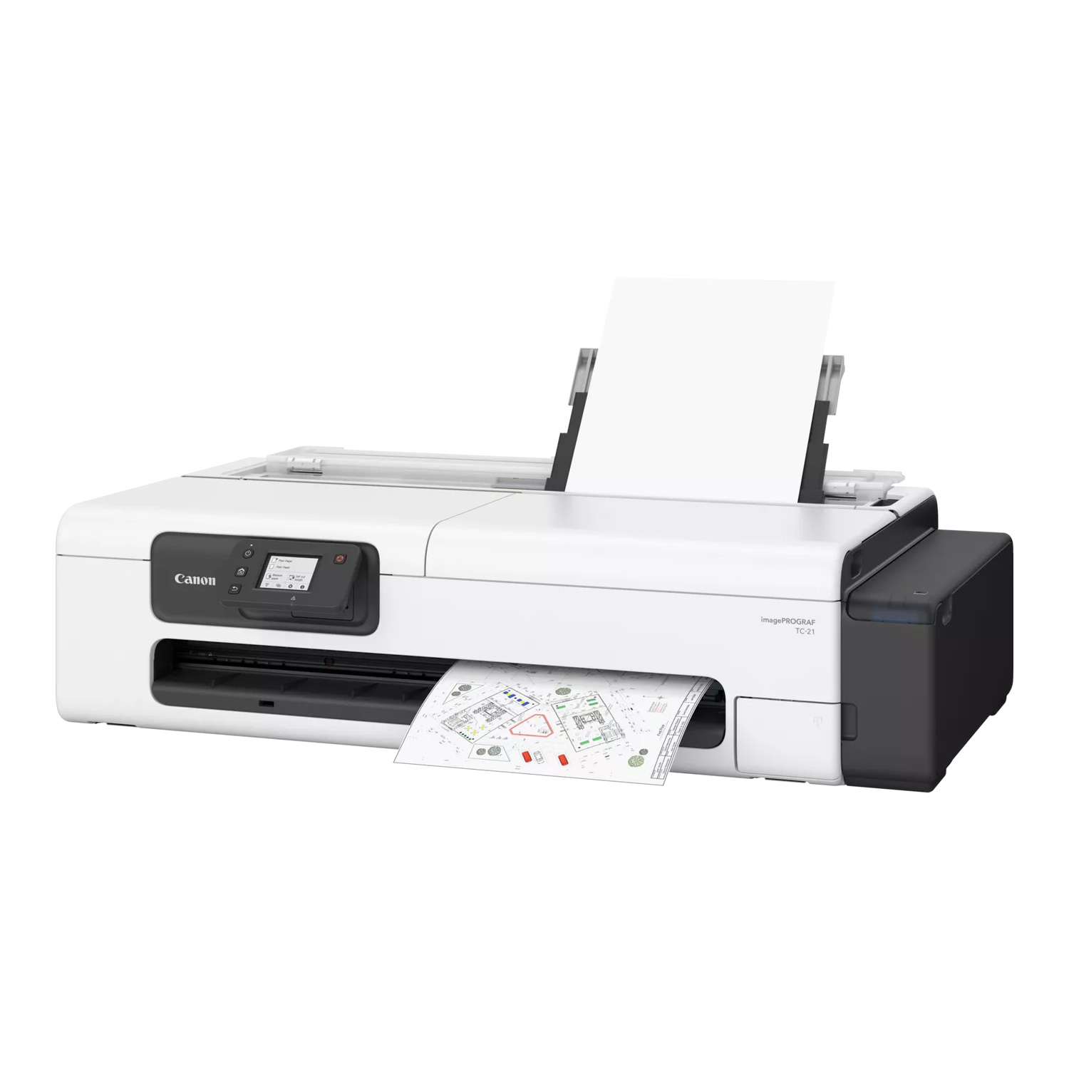 Canon TC-21 traceur Canon 24 pouces destiné à l'impression de plans et affiches. Imprimante grand format A1 pour les petits volumes d'impression avec remplissage des réservoirs par bouteilles. Se pose sur un bureau et dispose d'un panneau de contrôle inclinable.