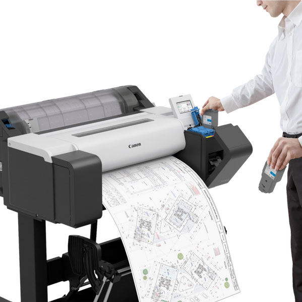 Canon TM250 traceur 24 pouces au design compact pour l'impression de plans au format A1. Traceur compatible avec tous les logiciels CAO du marché.