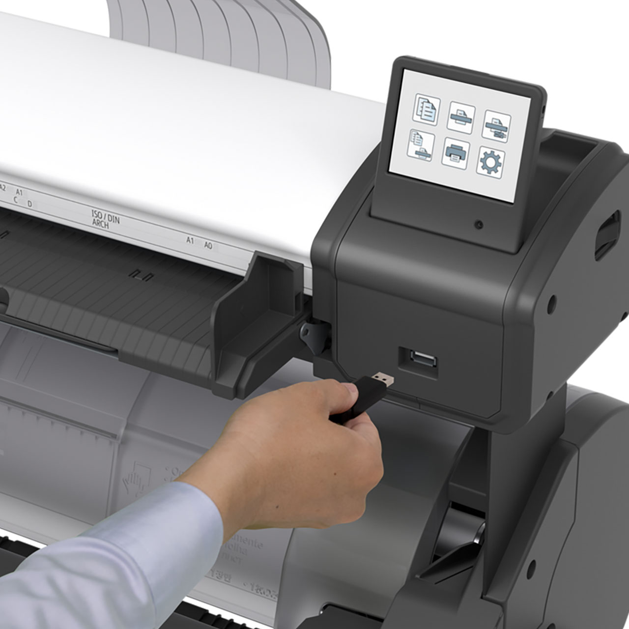 Conçu de manière fonctionnelle, équipé d'un écran tactile de 4,3 pouces affichant des instructions intuitives ainsi que des informations essentielles, comme le type de matériau, la quantité de matériau restante et d'encre disponible. Le chargement de la bobine est grandement simplifié grâce à l'utilisation du couvercle supérieur plat.